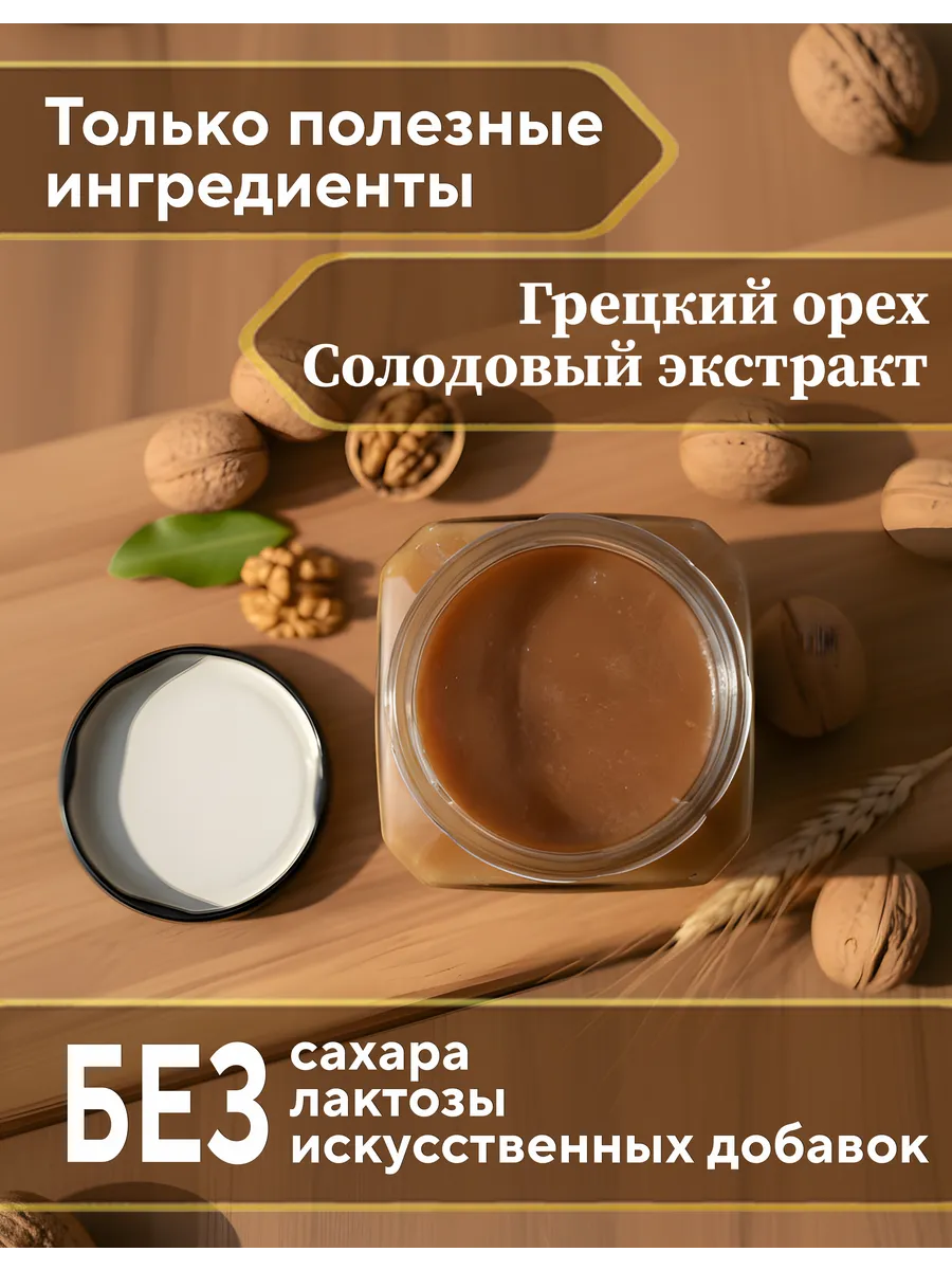 Только орехи и солод чистый вкус, нежная текстура и польза в каждой ложке.